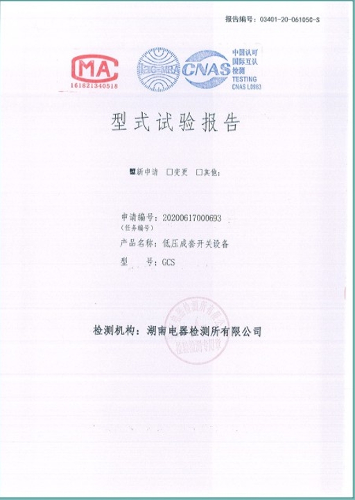 GCS1600A低壓柜型式試驗(yàn)報(bào)告